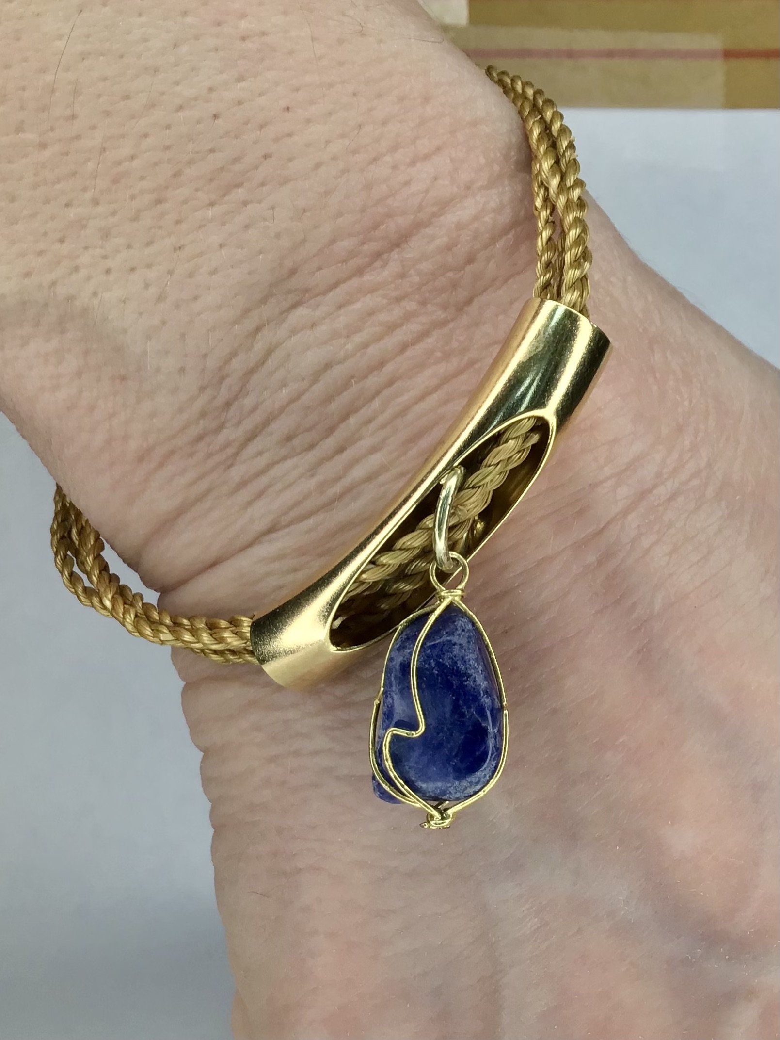 Image 1 of 2 Image 2 of 2 Azure Radiance $35.00 A sophisticated blend of braided golden strands and a striking blue Brazilian gemstone pendant centerpiece. Add To Cart Added! A sophisticated blend of braided golden strands and a striking blue Brazilian gemstone pendant centerpiece.