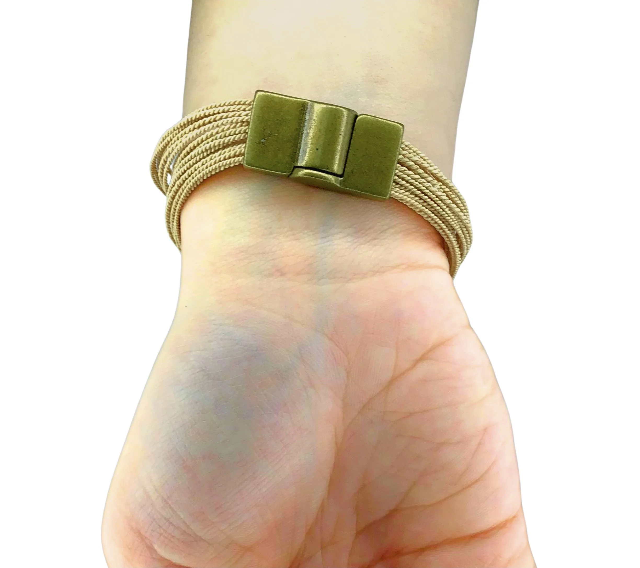 Image 1 of 2 Image 2 of 2 Leaf Charm Bracelet $50.00 Multi-strand bracelet featuring several 18k gold-plated bars and an 18k gold-plated hanging leaf charm. Add To Cart Added! Multi-strand bracelet featuring several 18k gold-plated bars and an 18k gold-plated hanging leaf charm.